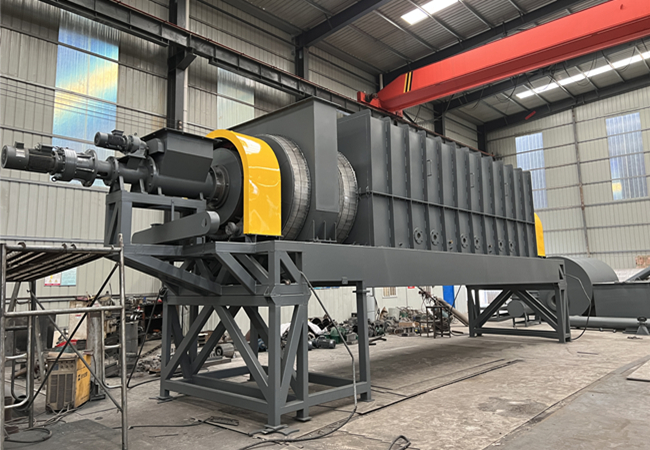 養(yǎng)殖規(guī)模較大養(yǎng)殖場每天產(chǎn)生的畜禽糞便量很大,糞污處置困難,糞便的能源化利用率很低。針對這一情況,鞏義市北斗機(jī)械自主研究開發(fā)的新型雞糞炭化機(jī),通過炭化、熱解技術(shù)對畜禽糞便進(jìn)行處理。由于畜禽糞便中含有較多水分,適合采用分級炭化系統(tǒng),包括:畜禽糞便烘干機(jī)、炭化機(jī)。